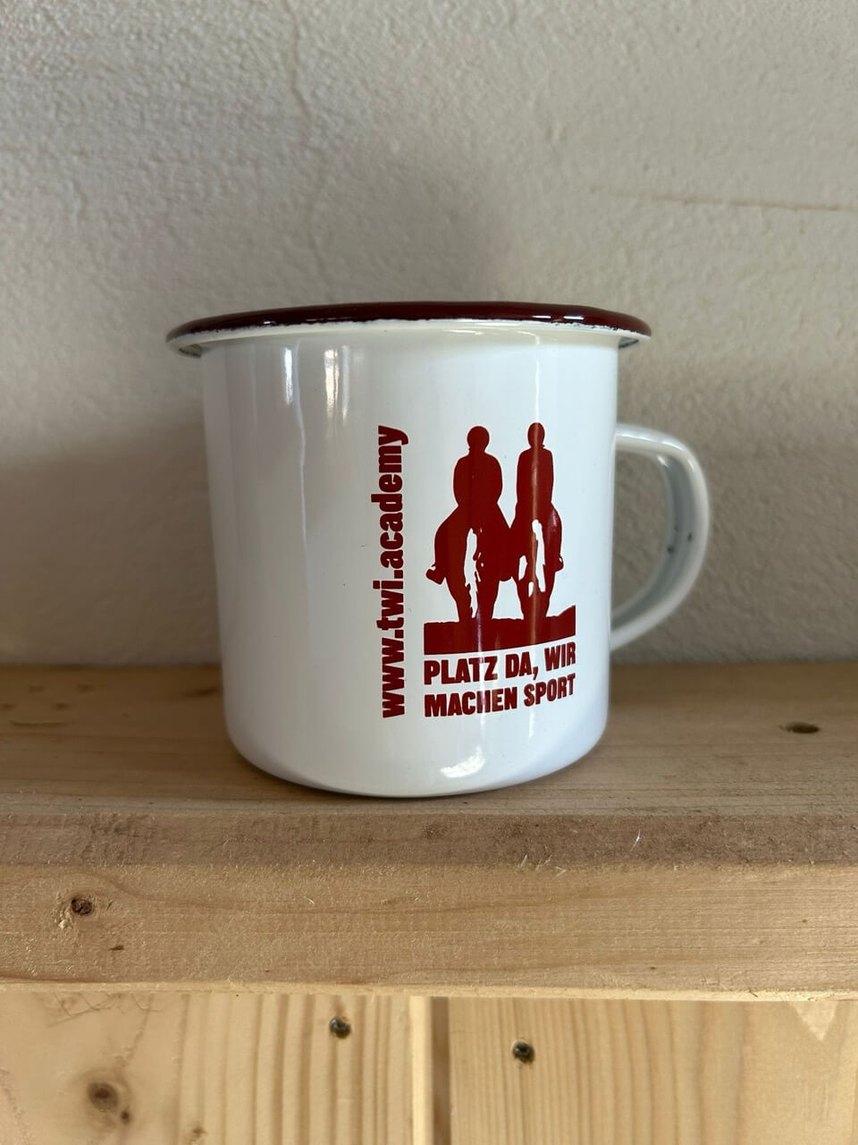 Material: Robustes Emaille mit Edelstahlrand – leicht genug für unterwegs, beständig genug für ein ganzes Reiterleben.