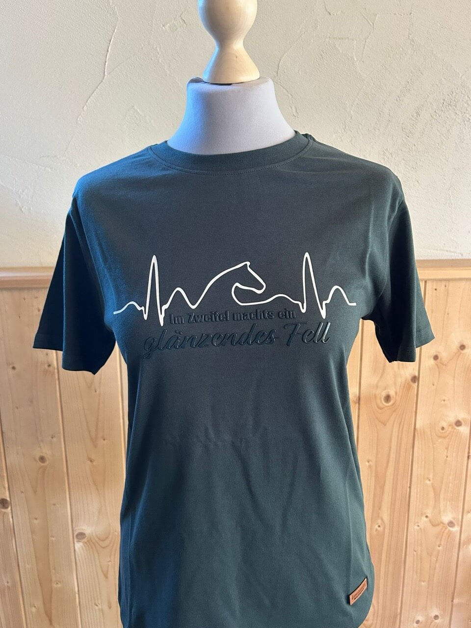 T-Shirt „Im Zweifel macht’s ein glänzendes Fell” – die charmante Antwort auf viele schlaue Ratschläge. Und die Erinnerung, dass die schönste Antwort häufig einfach exzellente Arbeit ist. Wenn das Pferd strahlt, verstummen die Zweifler von selbst.