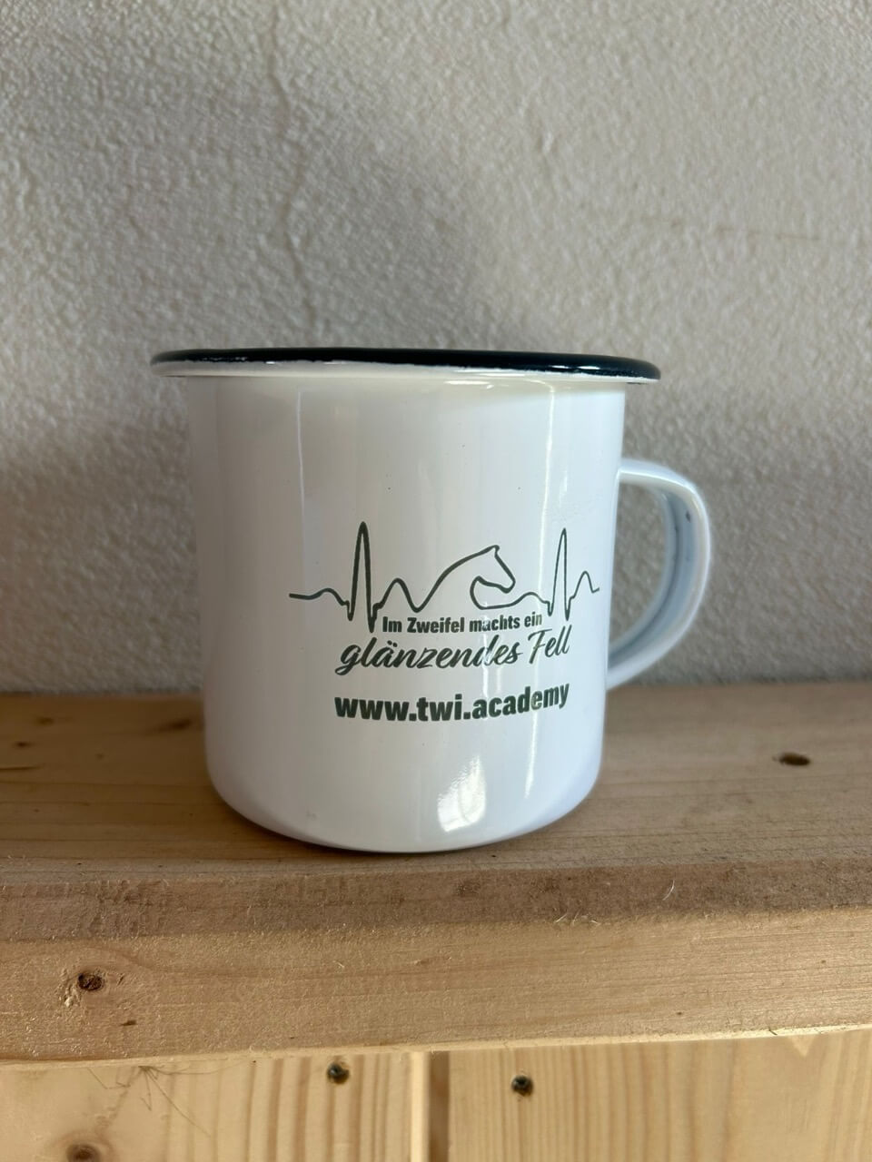 Emailletasse "Glänzendes Fell", dunkelgrün